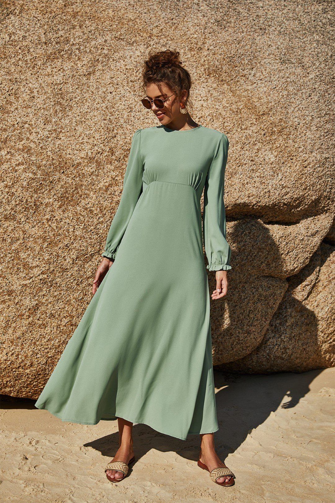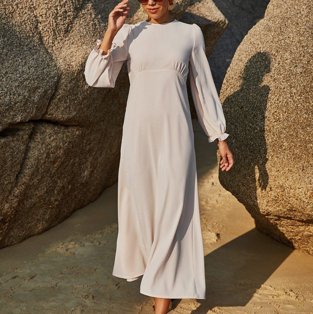 Solid Color Elegant Ruffled Hem Maxi Dress$13.96 USD