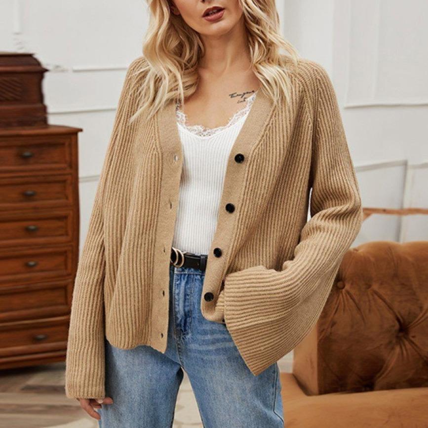 Solid Color V-Neck Casual Knit Cardigan$14.42 USD