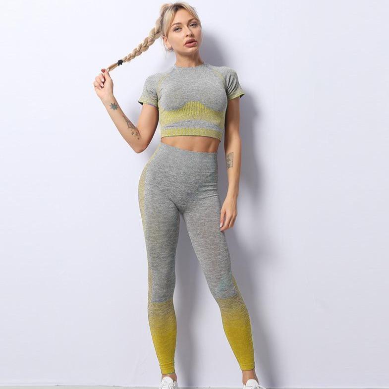 • Round Neck Seamless Stretch Yoga Two-Piece Suit