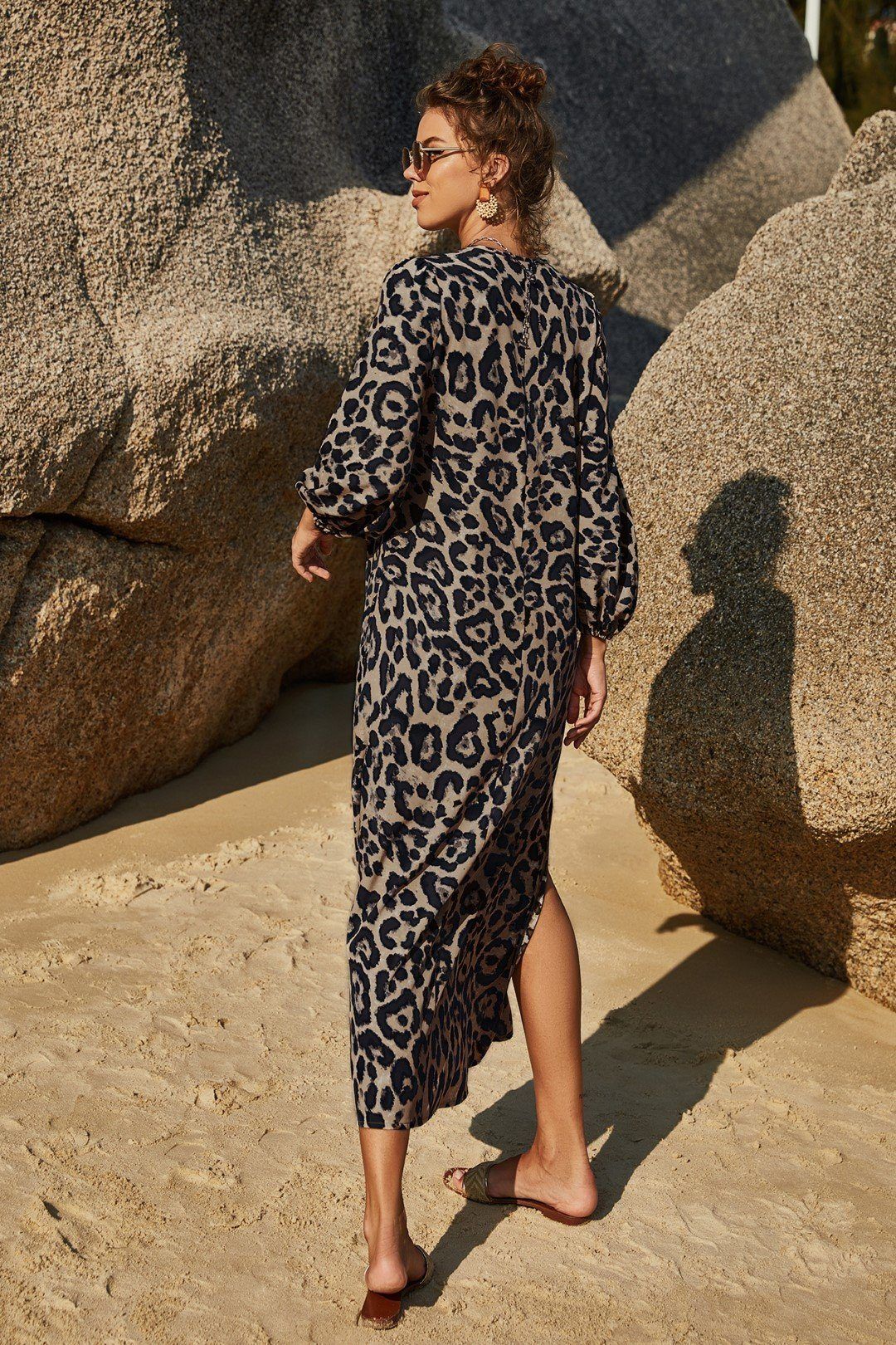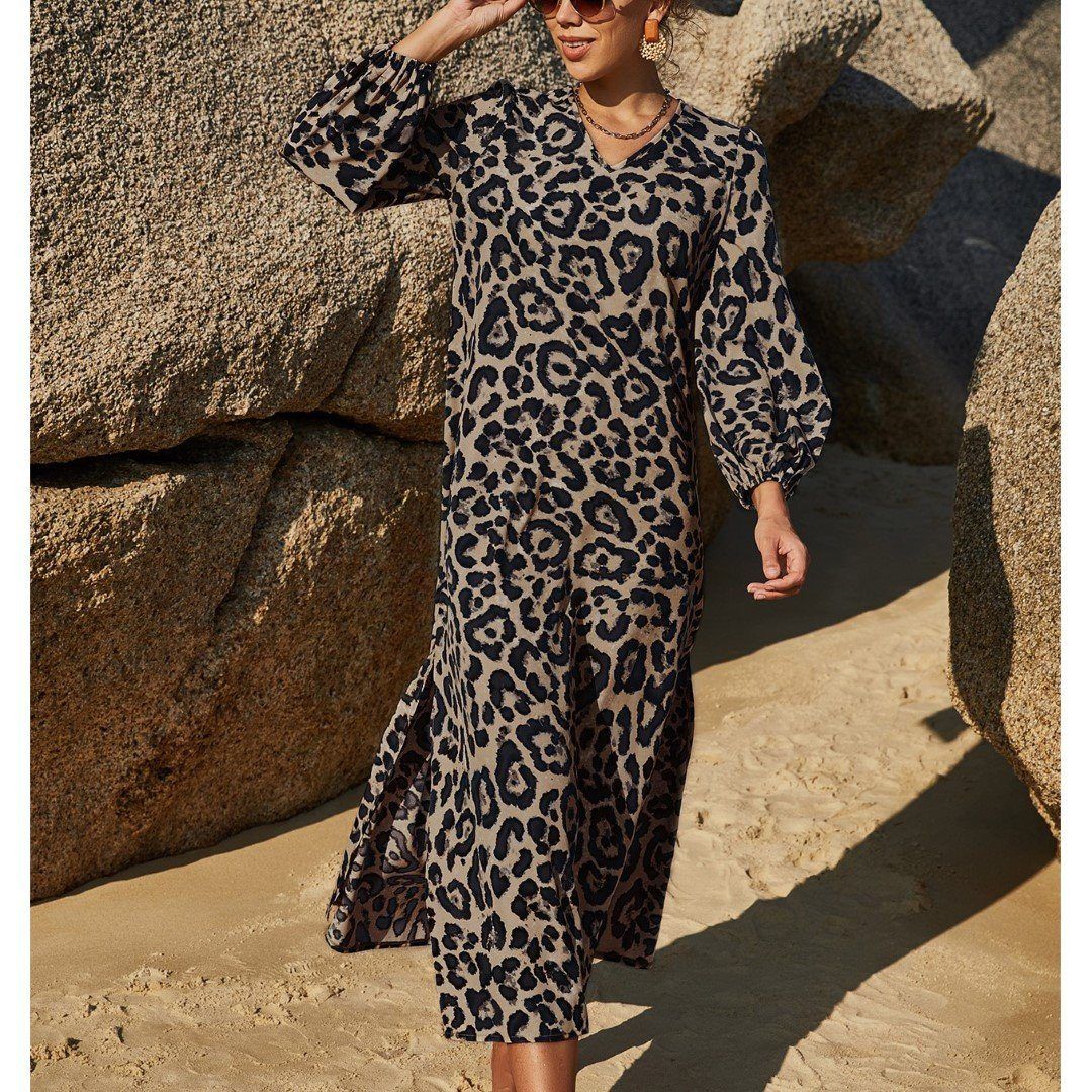 • Wild Leopard Side Split Long Sleeve Dress