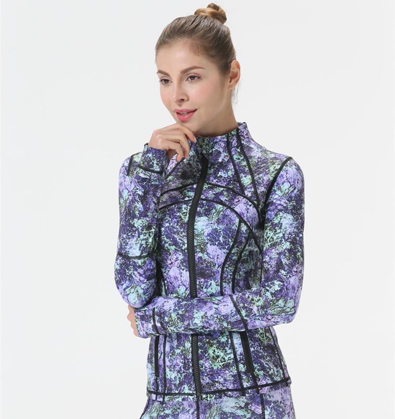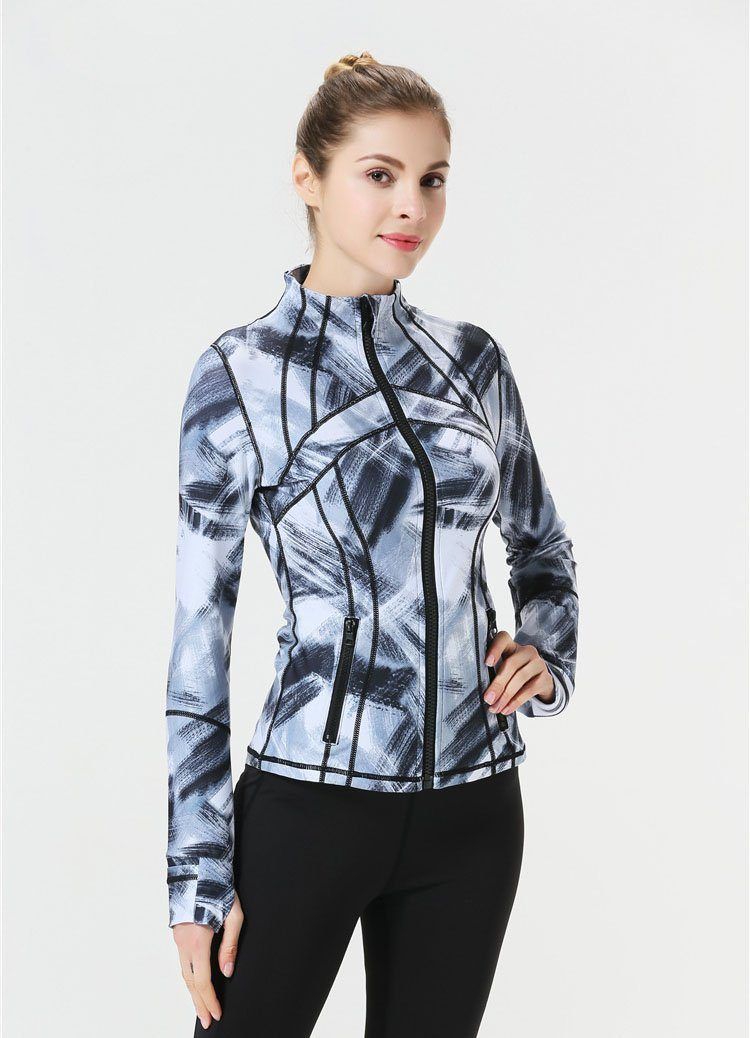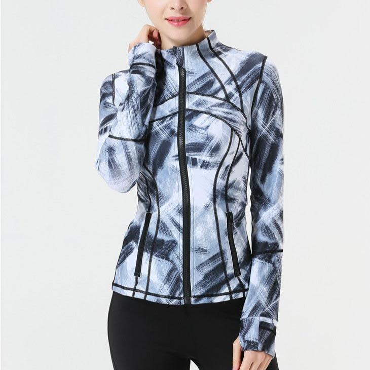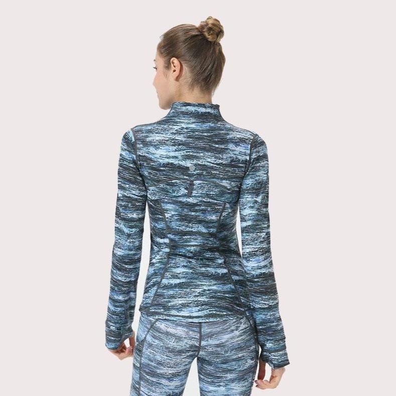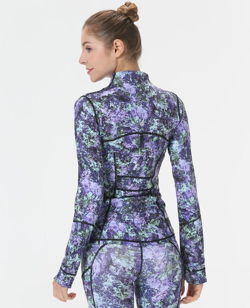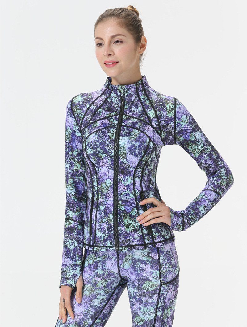 Quick Dry Zipper Up Printed Stretch Yoga Top