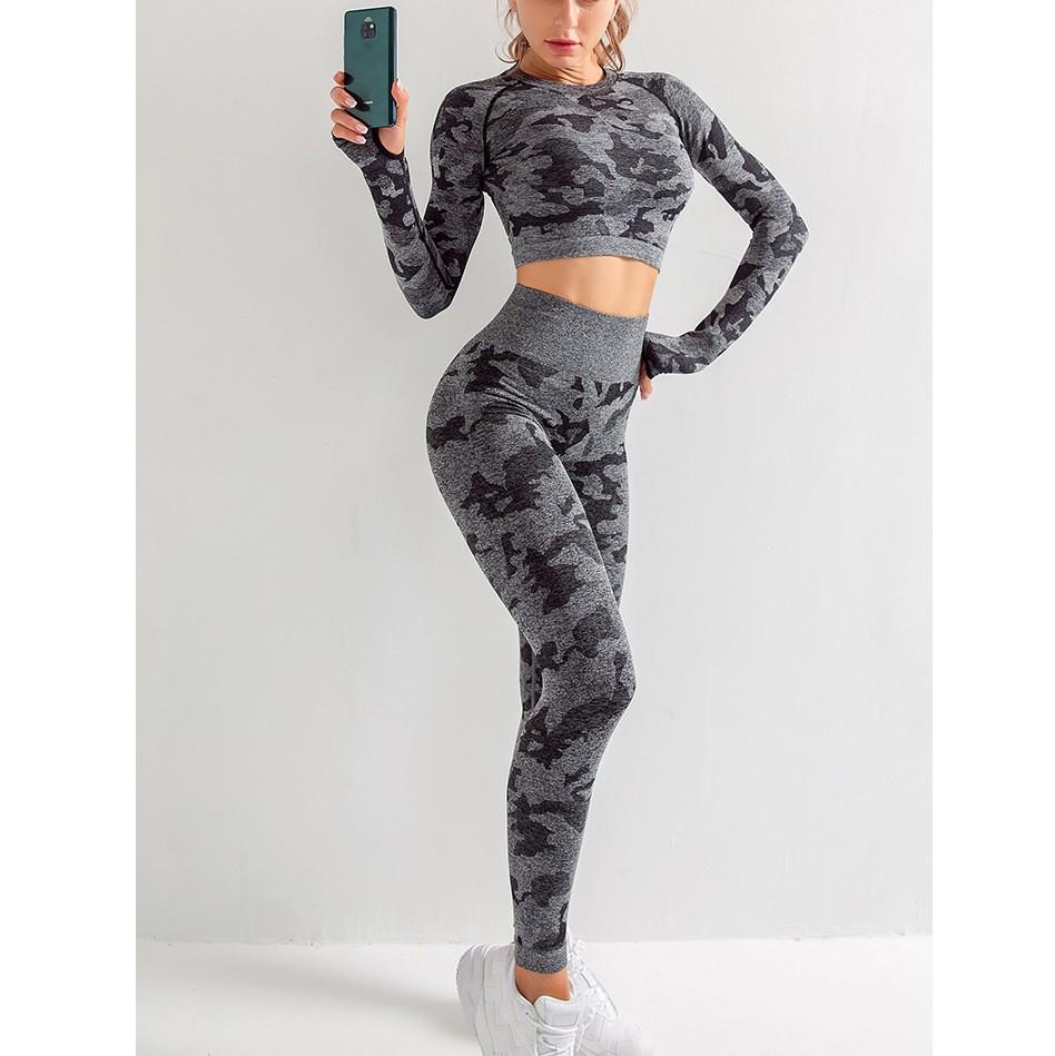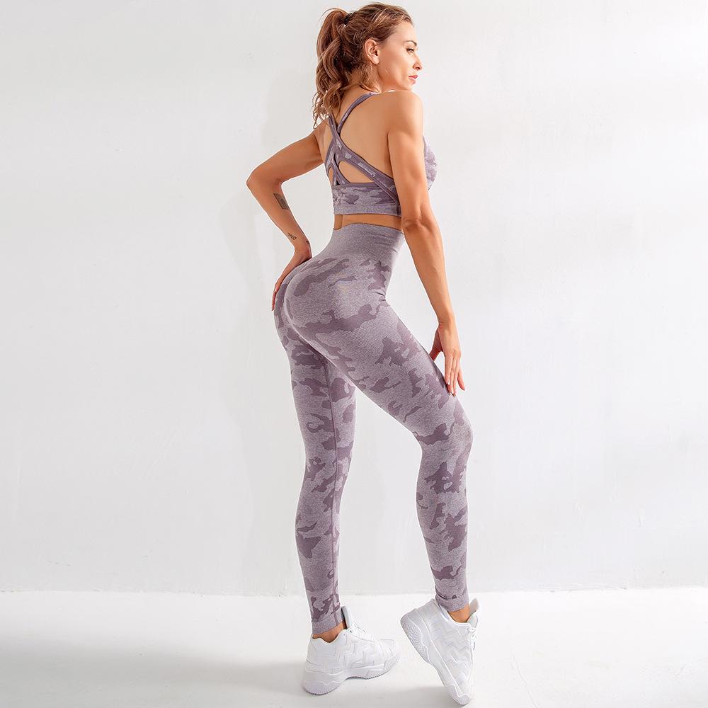 Camouflage Seamless Stretch Yoga Three-Pieces Suit