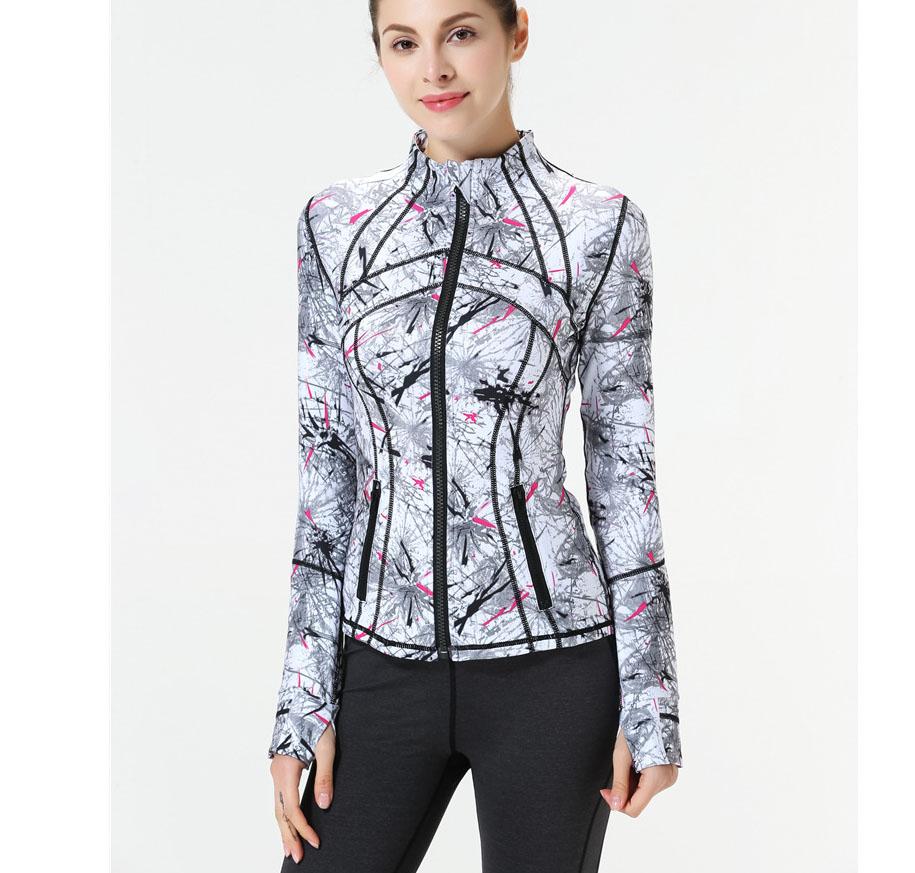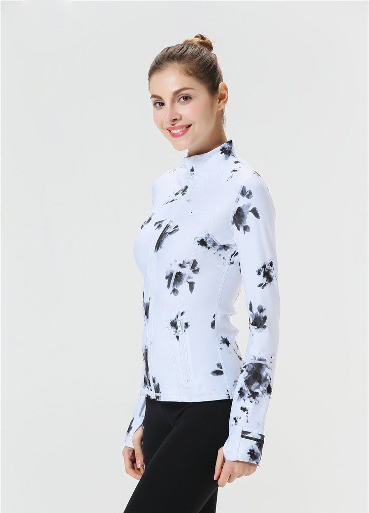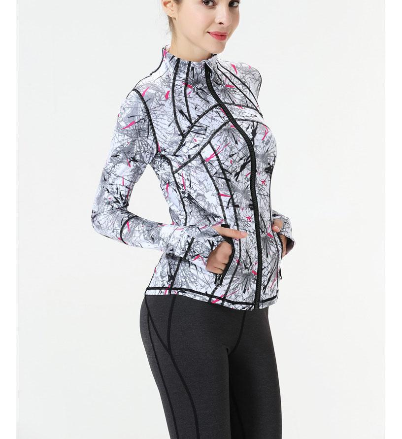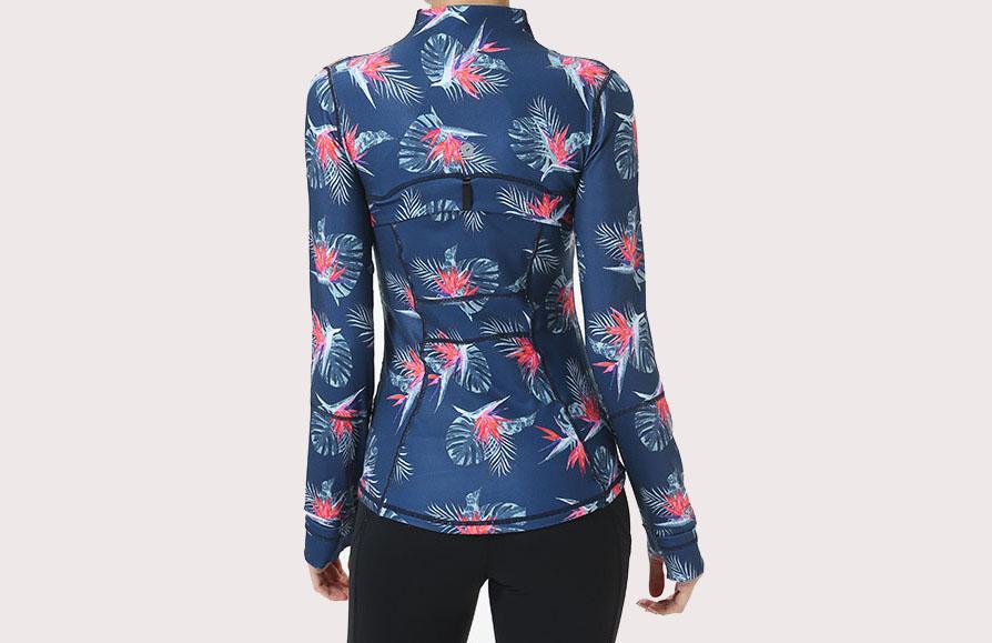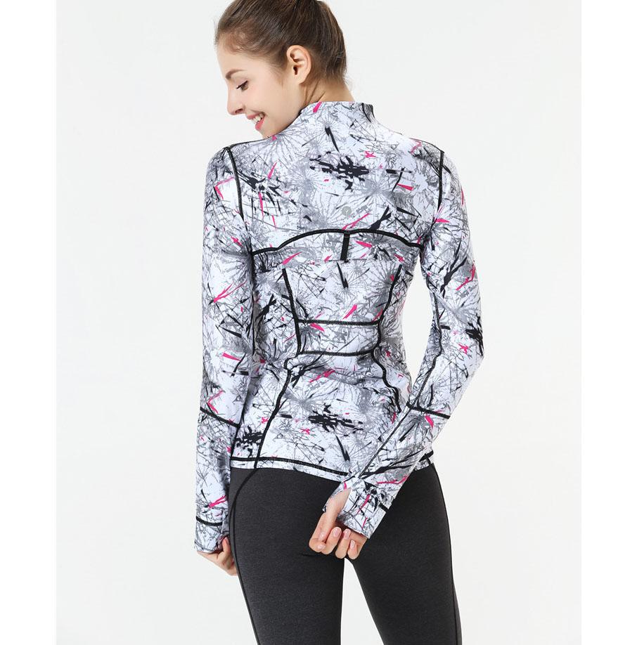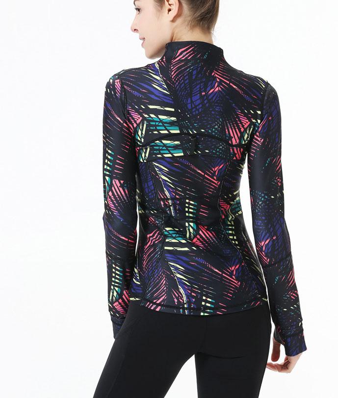 Zipper Up Printed Quick Dry Stretch Yoga Top