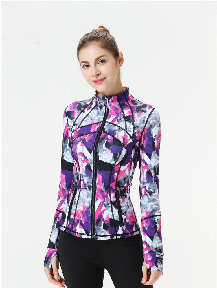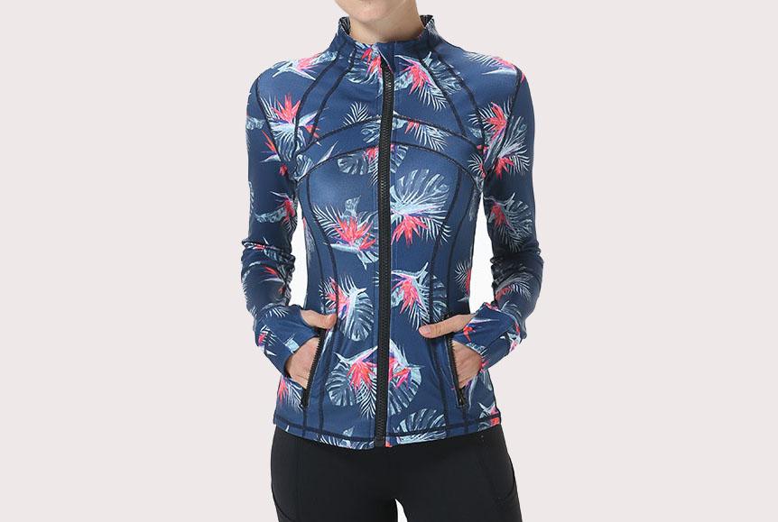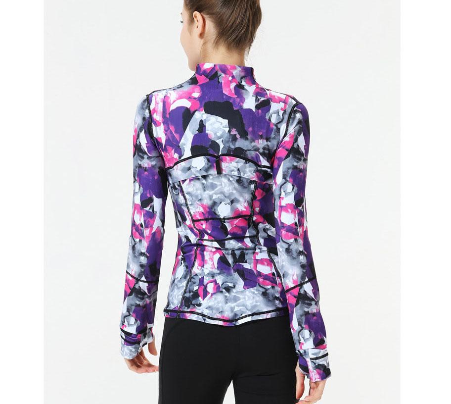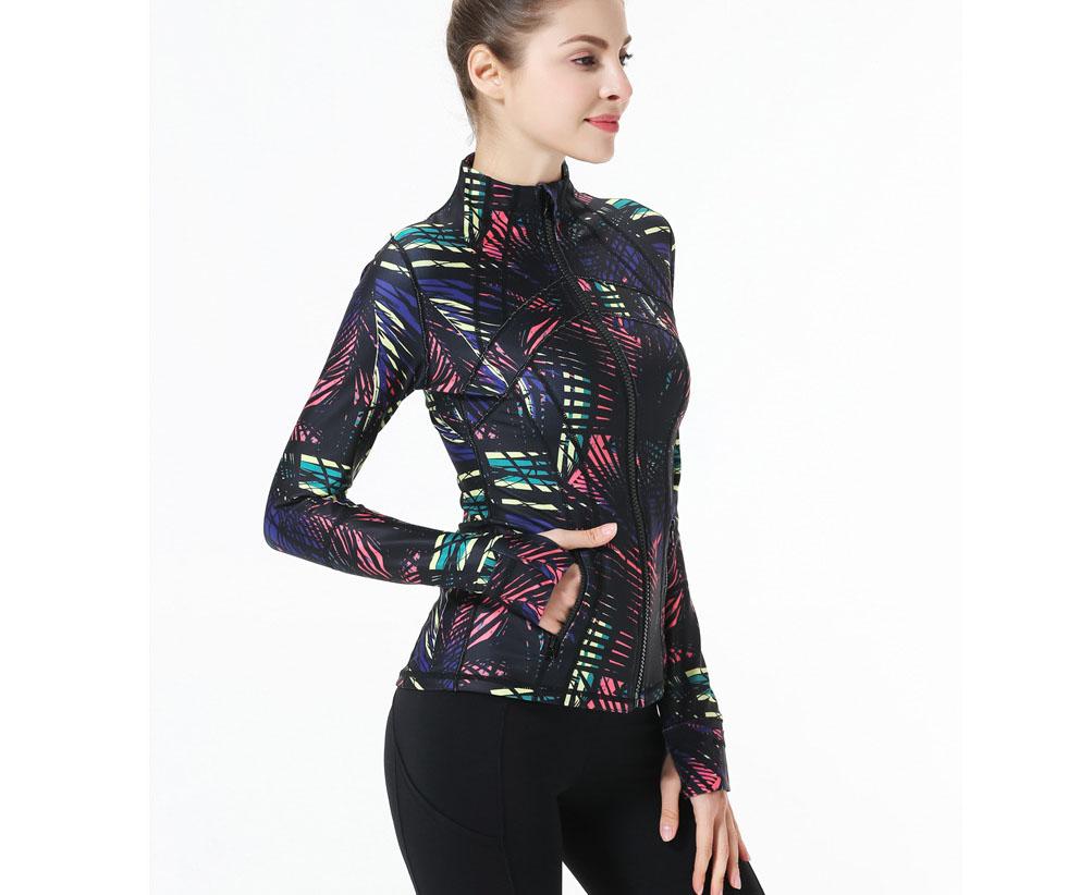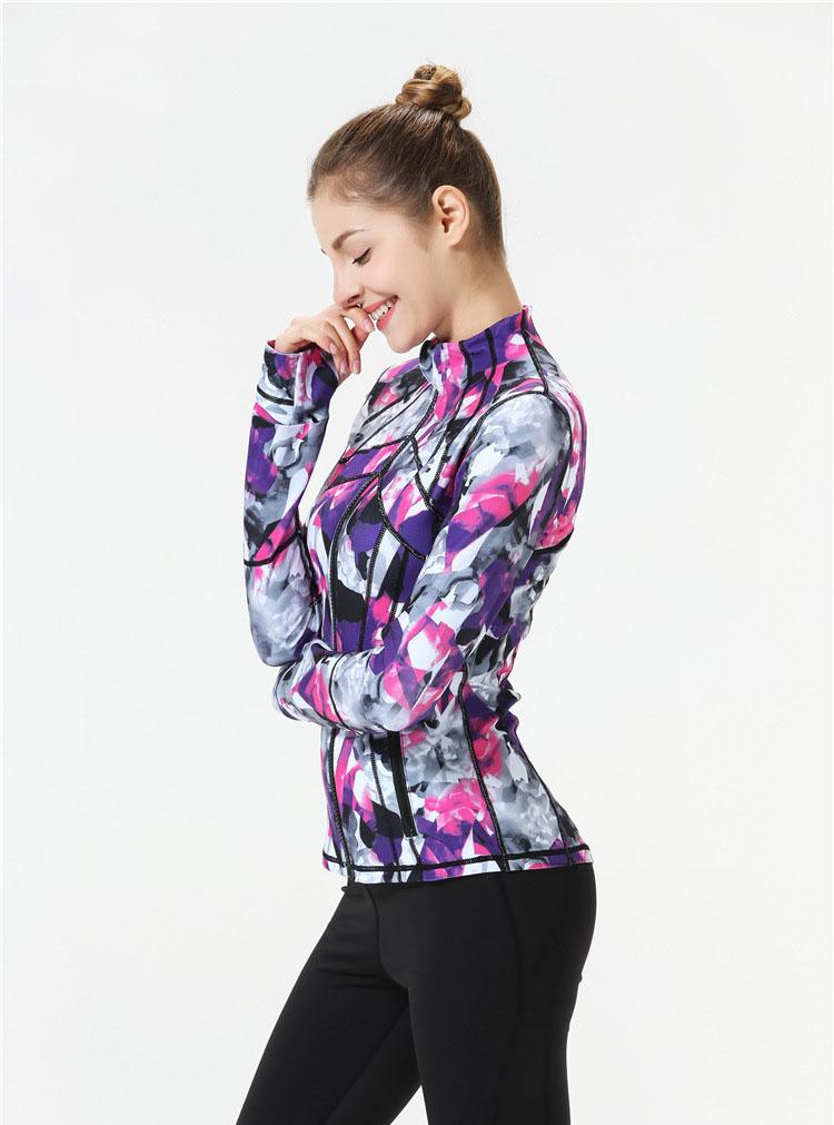 Zipper Up Printed Quick Dry Stretch Yoga Top